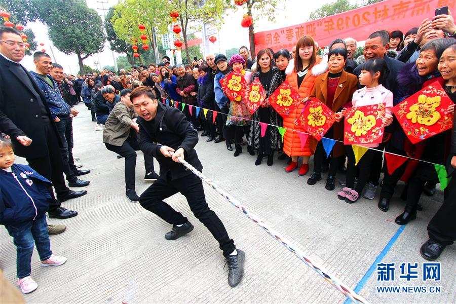2月5日,浙江台州市路桥区蓬街镇浦南村的村民在进行拔河比赛。 新华社发(蒋友亲 摄)
