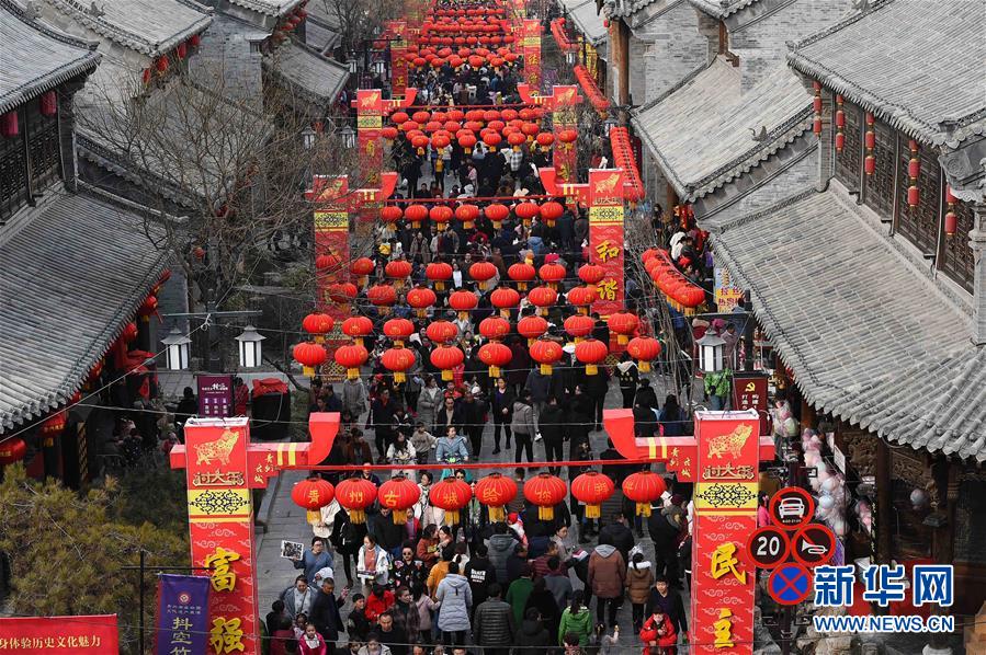 2月5日,游客在山东潍坊市青州古城景区游玩。 新华社发(王继林 摄)