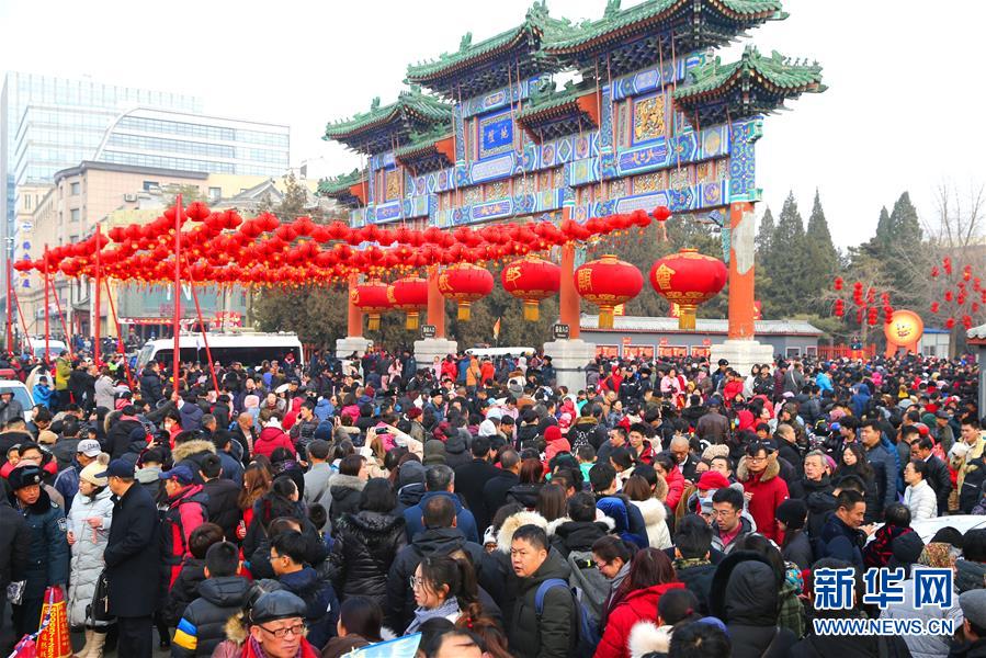 2月5日,游人在北京地坛春节文化庙会上游玩。 新华社发(郭俊锋 摄)