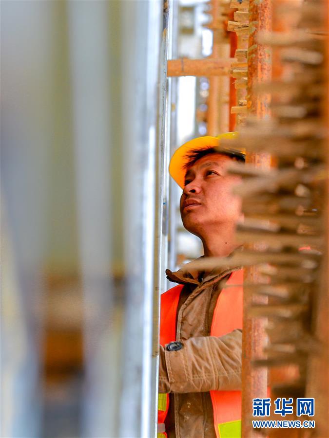 2月5日,在位于江西吉安市的昌赣客专峡江站建设工地,工人在施工。 新华社发(陈福平 摄)