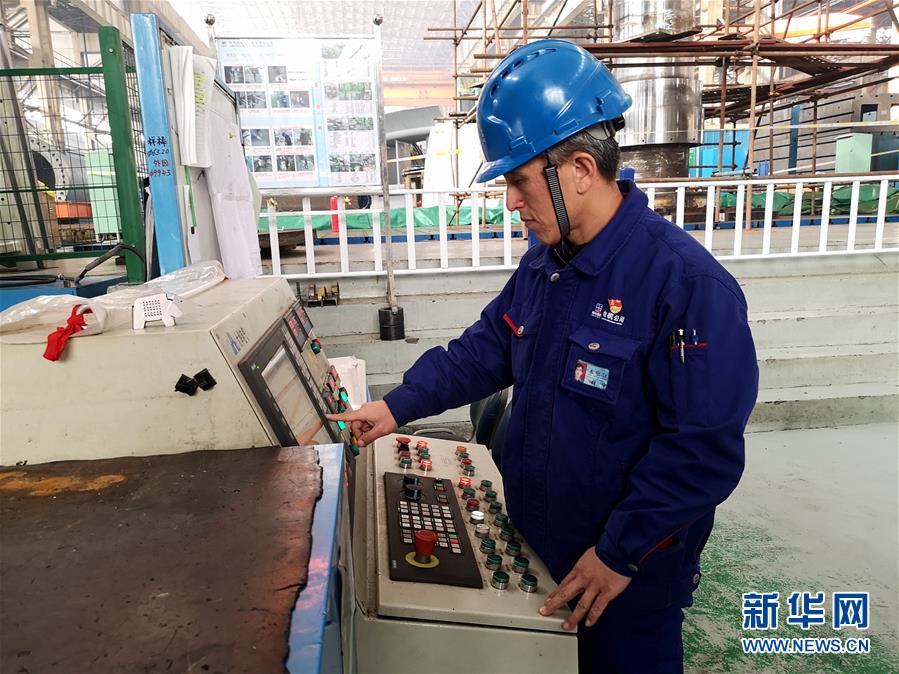 胡宇在哈尔滨电机厂有限责任公司水电分厂车间操控设备(1月29日摄)。 新华社记者 杨思琪 摄
