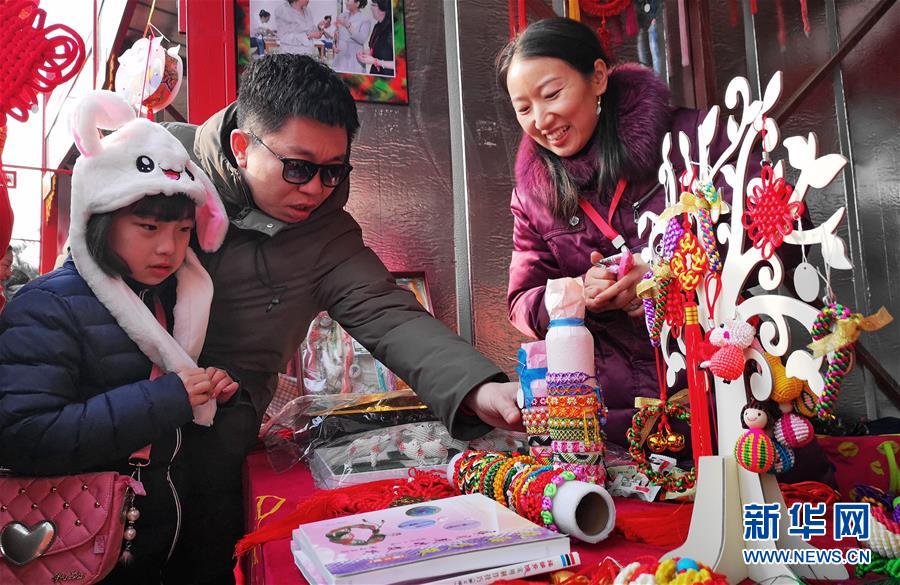 2月5日,游客在庙会上购买工艺品。 新华社记者 李欣 摄