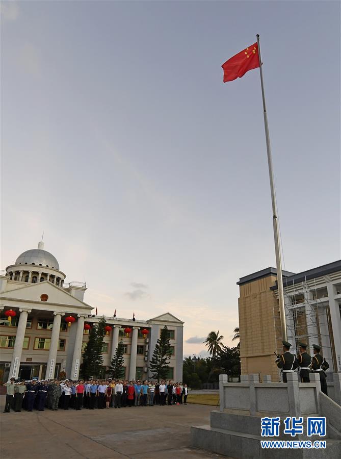2月5日是农历大年初一,海南省三沙市永兴岛举行升国旗仪式,庆祝新春佳节。 新华社记者 杨冠宇 摄