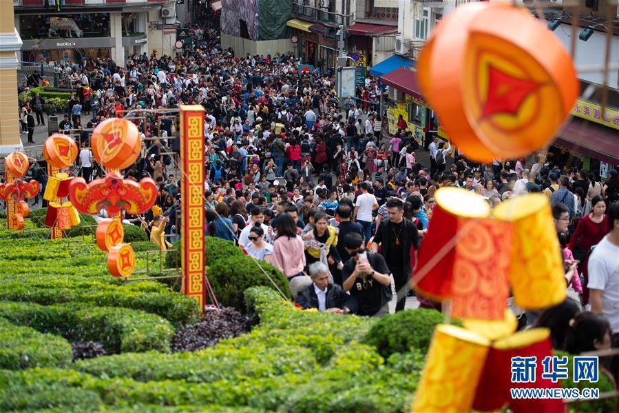 2月6日,游客在澳门大三巴牌坊前地游览。新华社记者 张金加 摄