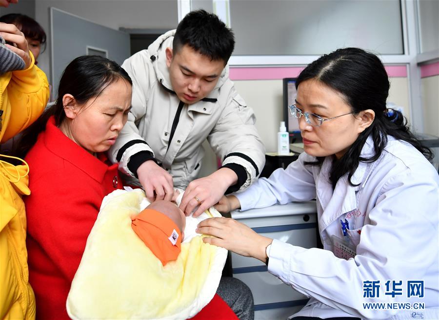 2月6日,山西省儿童医院的医生(右一)在为患儿诊治。 新华社记者 曹阳 摄
