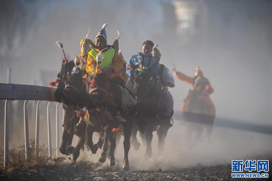 赛马中的骑手们(2月7日摄)。新华社记者 普布扎西摄