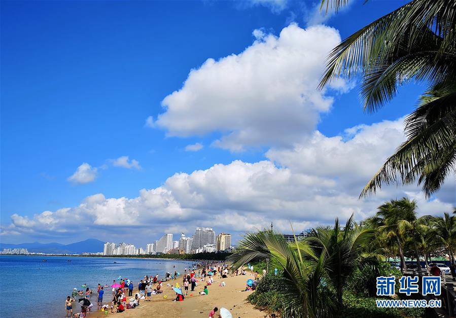 2月6日,人们在海南三亚海滨浴场休闲度假。 春节长假,人们走出家门走进自然,乐享山水好风光。 新华社发(刘书亭 摄)