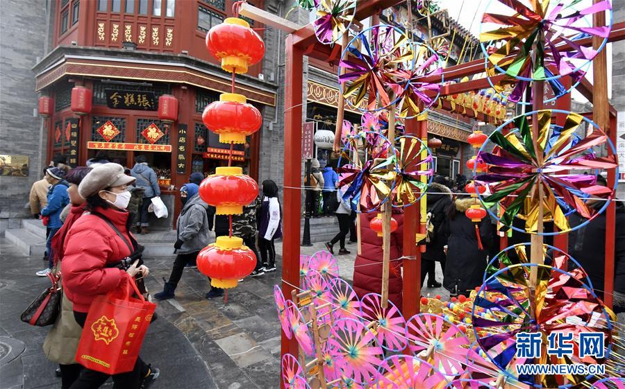 2月8日,游人在前门的胡同内游览。 春节期间,北京前门地区游人如织,来自全国各地的游人来此参观北京胡同、品尝老北京美食,乐享春节假期。 新华社记者李欣摄