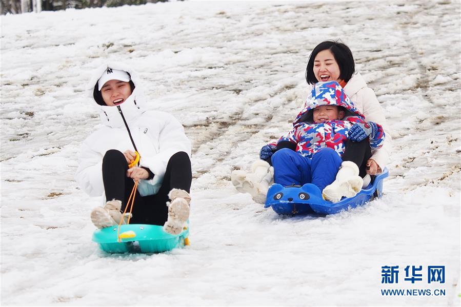 2月8日,市民在江苏省镇江市南山景区滑雪游玩。 春节假期,人们以多种方式度假休闲,沉浸在节日的欢乐中。 新华社发(封疆江 摄)