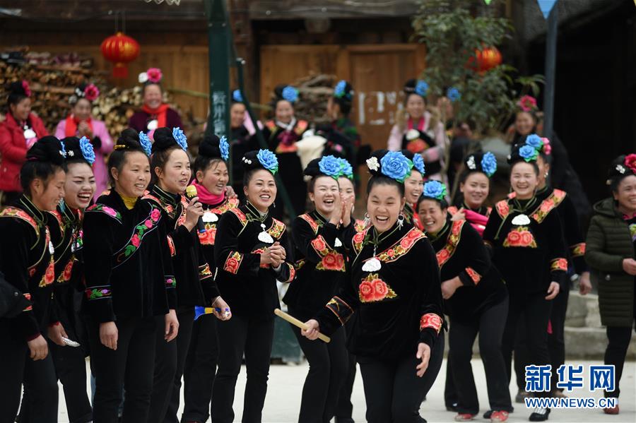 2月8日,在贵州省台江县南宫镇交密村,村民在参加趣味接力赛。 春节假期,人们以多种方式度假休闲,沉浸在节日的欢乐中。 新华社发(刘开福 摄)