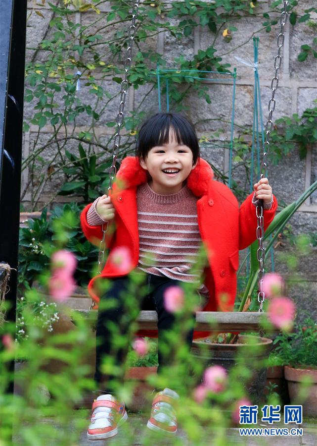 2月8日,在福建省漳州市长泰县玫瑰农庄,一名小游客在花间玩耍。 春节假期,人们以多种方式度假休闲,沉浸在节日的欢乐中。 新华社发(肖和勇 摄)