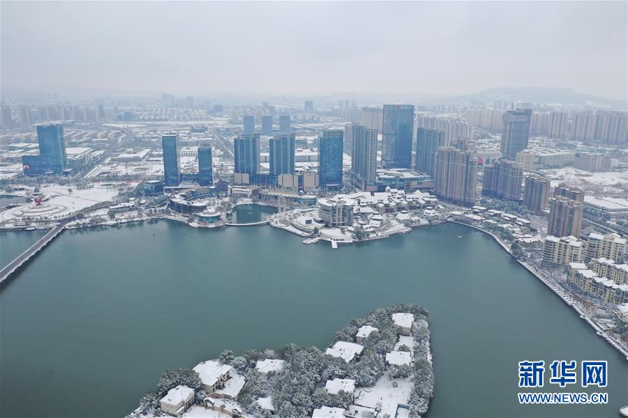 2月8日无人机拍摄的南京百家湖周边景色。2月7日至8日,江苏南京迎来降雪天气,为新春佳节增添许多趣味。新华社记者 季春鹏 摄