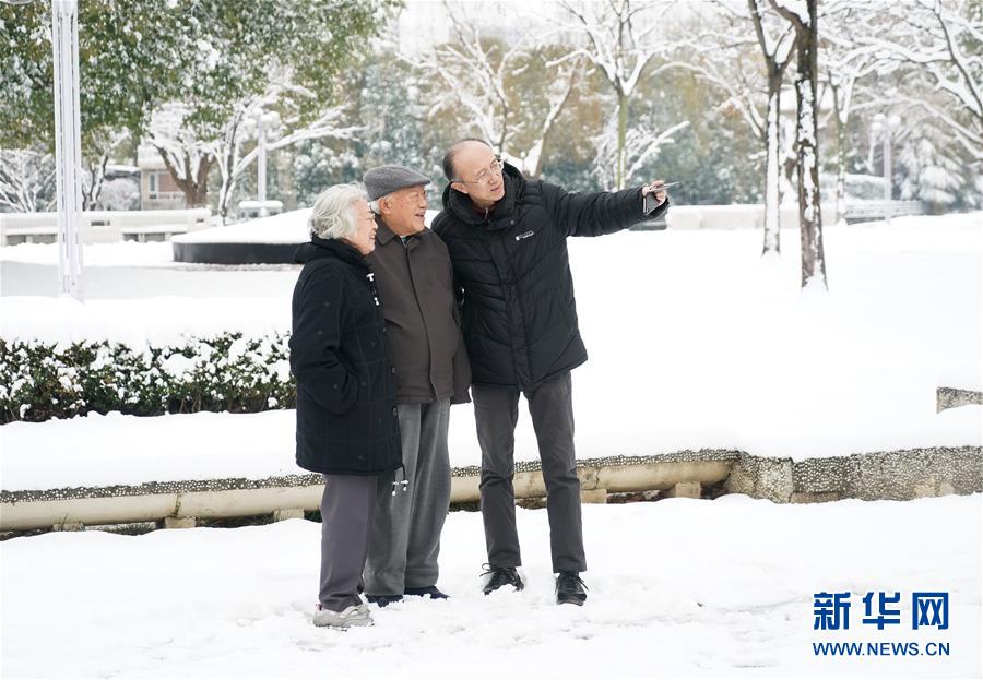 2月8日,市民在南京百家湖畔赏雪。2月7日至8日,江苏南京迎来降雪天气,为新春佳节增添许多趣味。新华社记者 季春鹏 摄