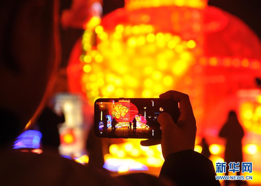 2月8日,游客在河北省黄骅市举办的新春灯会上拍照留念。 春节期间,河北省黄骅市举办的新春灯会吸引了大批游客前来观赏。灯会上各类造型花灯流光溢彩,洋溢着浓浓的年味。 新华社记者 牟宇 摄