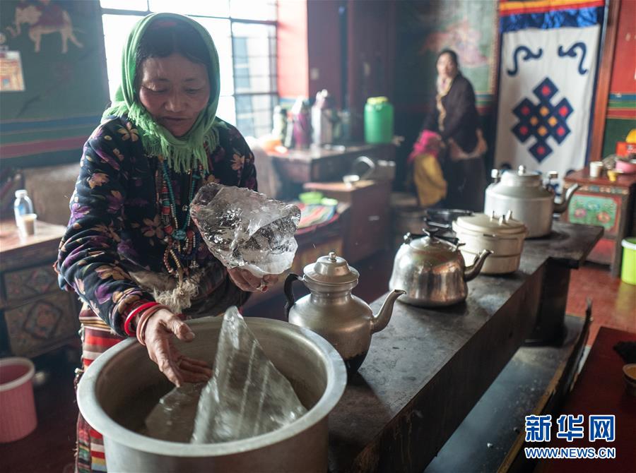 双湖县嘎措乡牧民在化冰烧水(1月31日摄)。 新华社记者 普布扎西 摄