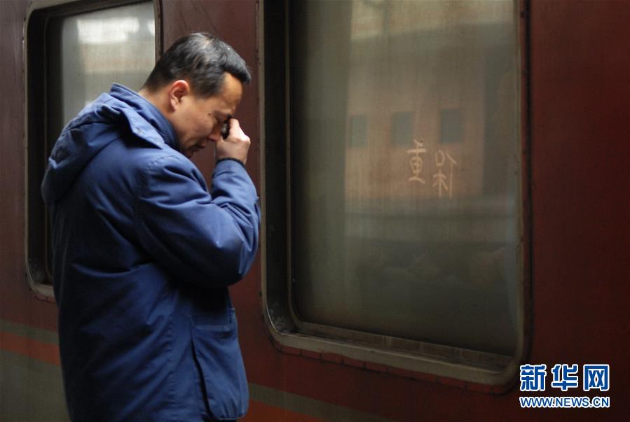 2011年1月18日,在宁波工作的白先生送别回甘肃老家过年的父母,父母在车窗上写下了“保重”两个字。新华社记者 鞠焕宗摄