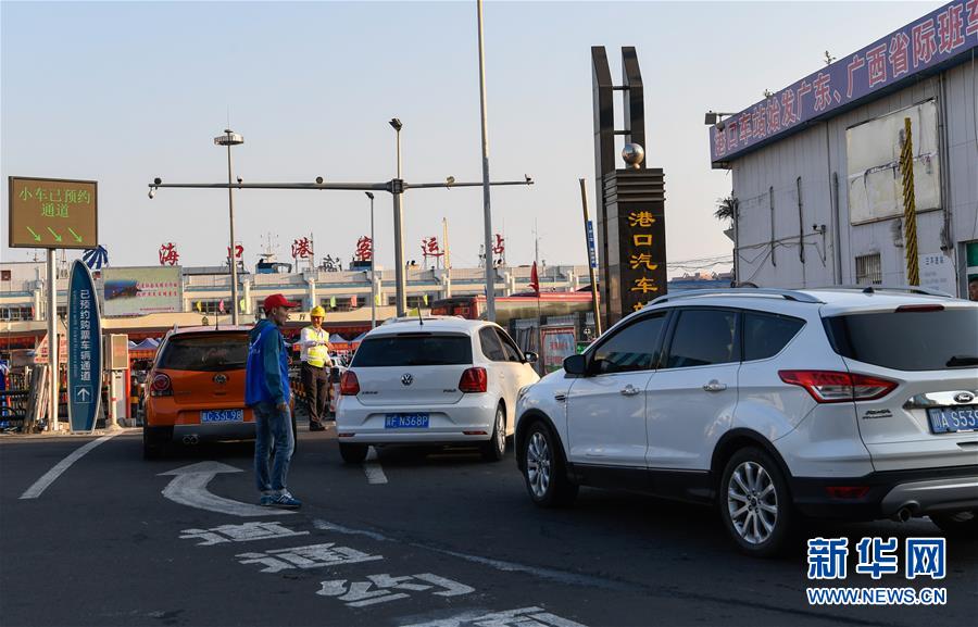 2月9日,志愿者和工作人员在海南海口秀英港外维持秩序。 春节长假即将结束,各地迎来返程客流高峰。 新华社记者 杨冠宇摄