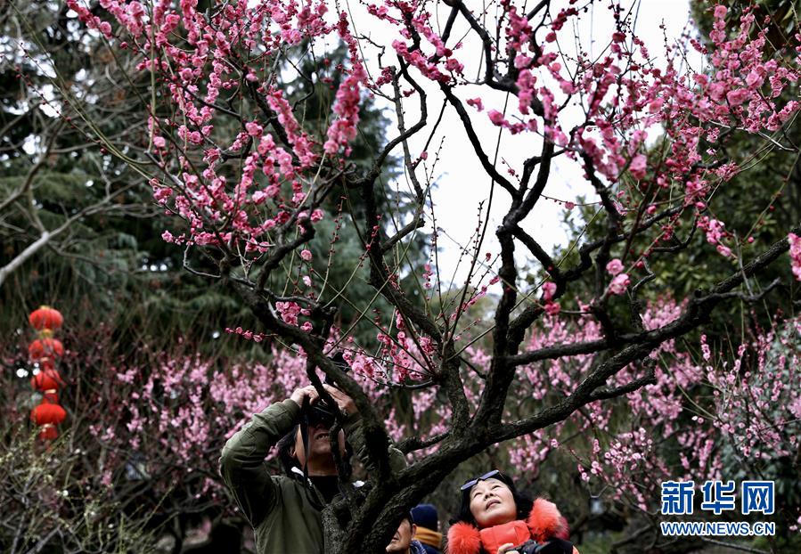 2月9日,游客在上海莘庄公园赏梅。 春节期间,上海各大公园和植物园的梅花盛放,市民游客纷纷游园赏花,欢度佳节。 新华社记者 刘颖 摄