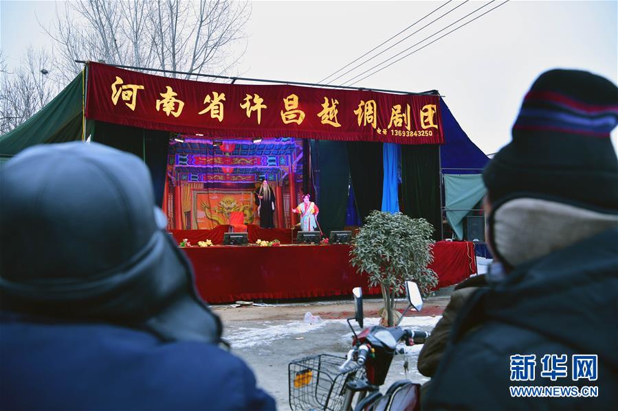 2月9日,群众在七里店村观看节目。 当日,为丰富群众春节期间的文化生活,河南省南阳市方城县券桥镇七里店村采取村民集资的方式,聘请剧团唱大戏。 新华社记者 冯大鹏 摄
