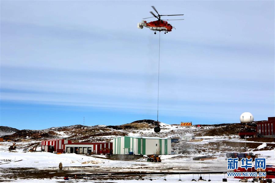 2月9日,船载直升机“雪鹰12”向中山站吊运燃油。 2月9日,“雪龙”号极地考察破冰船抵达南极中山站,并于当天开始用船载直升机“雪鹰12”向中山站吊运燃油。 新华社记者 刘诗平 摄