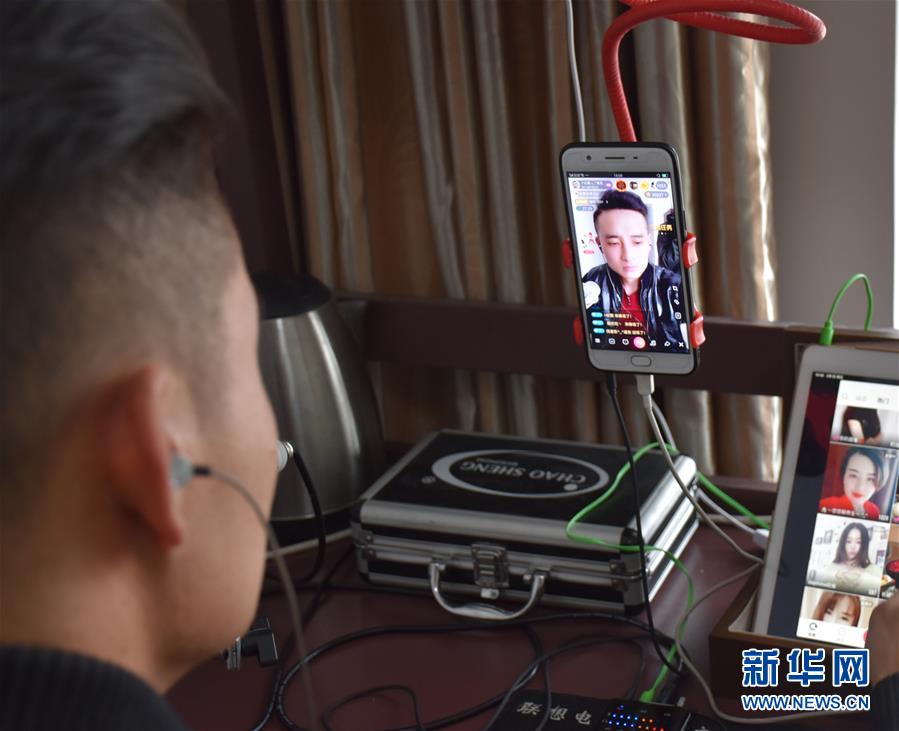 袁亮在直播间与“粉丝”互动。在互联网上,他是拥有5万多名“粉丝”的“网红”(2月1日摄)。 新华社记者 高晗 摄
