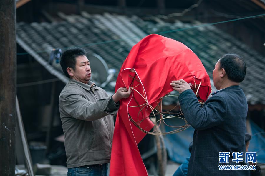 2月9日,重庆湖广会馆禹王祭祀典礼开始前,舞狮队在表演传统舞狮节目。 当日是农历正月初五,重庆湖广会馆举行禹王祭祀典礼和迎财神巡游,吸引了众多市民和游客。 新华社记者 刘潺 摄