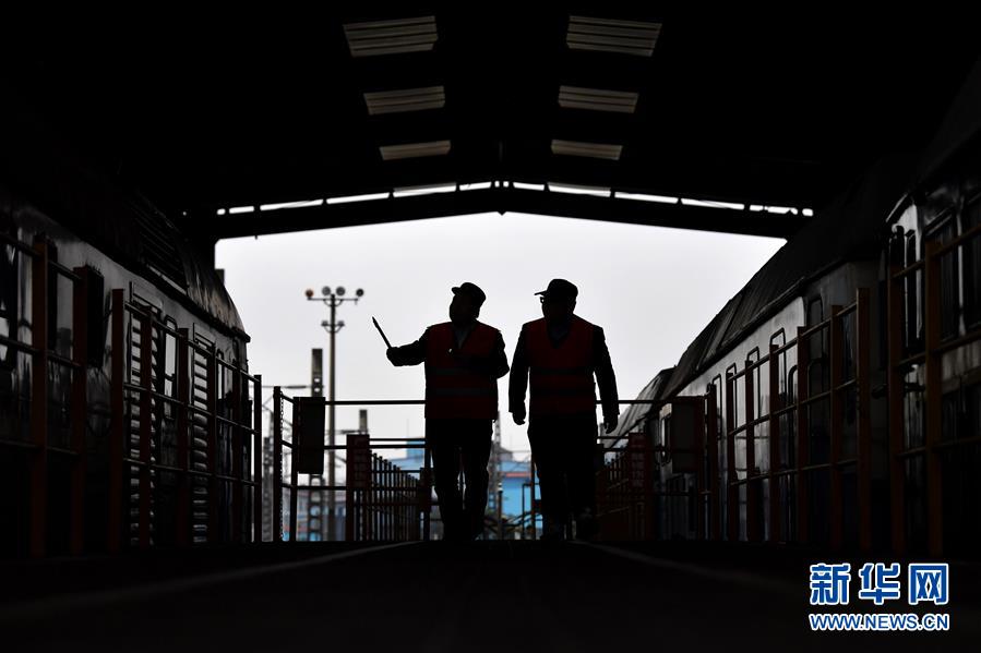2月9日,在中国铁路南昌局集团有限公司向塘机务段,春运火车头“120”应急指导台的技术人员(左)和火车司机一同巡查,为即将出库的火车头排查隐患。 新华社记者 彭昭之 摄