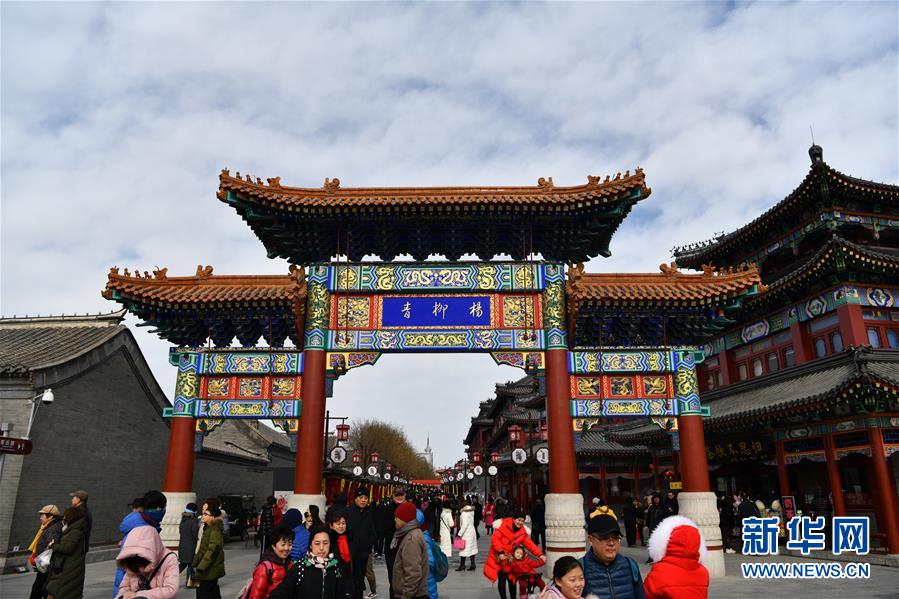 2月9日,游客在杨柳青古镇参观游玩。 春节期间,天津市西青区杨柳青古镇年味正浓,各式活动吸引大批游客前往观光体验。 新华社记者 李然 摄
