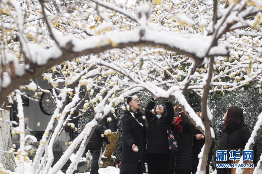 2月9日,游客在拍摄合肥市包公园内的雪景。 近日,安徽合肥出现降雪天气。雪后,合肥市包公园内景色别致。 新华社记者 张端 摄