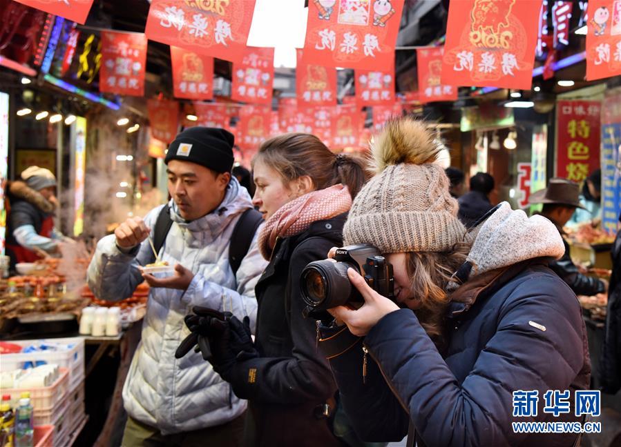 2月9日,游客在劈柴院内参观拍摄。 春节期间,青岛百年老院劈柴院举行“贺年会”,推出各种地方名、特、优小吃和民俗戏曲演出,吸引市民和游客前往感受传统年味。 新华社记者 李紫恒 摄