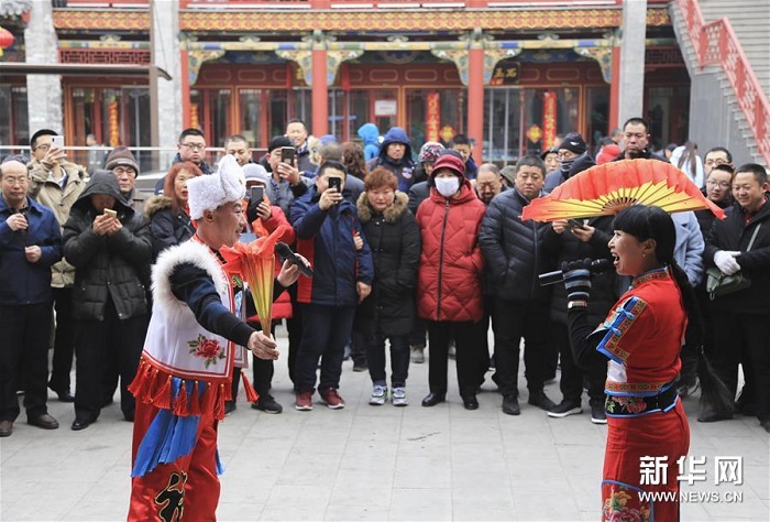 2月10日,民间艺人在山西大同市潘家园古玩市场表演二人台。 当日是春节长假最后一天,各地举行的假日活动丰富多彩。 新华社发(任雪峰 摄)