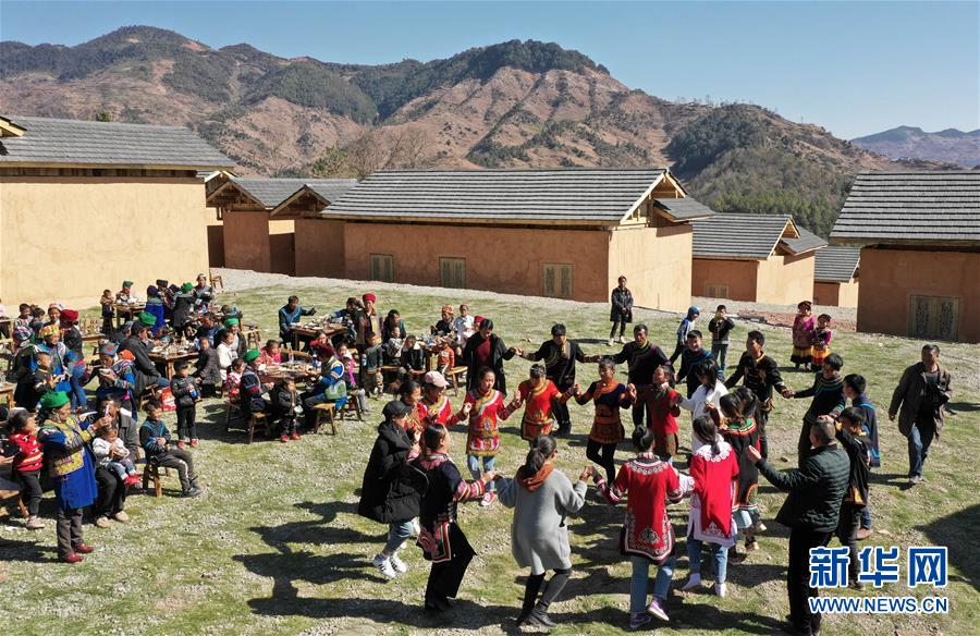 当日,位于大凉山腹地的四川省昭觉县三河村首批29户、168人告别居住多年的土坯房,搬入易地扶贫安置点的新家。搬进新家的彝族群众围坐在一起,吃起坝坝宴,跳起达体舞,热热闹闹地庆祝乔迁之喜。