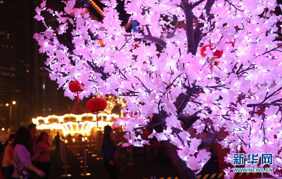 这是游客在游览香港夜景(2月3日摄)。 新华社记者 吴晓初 摄