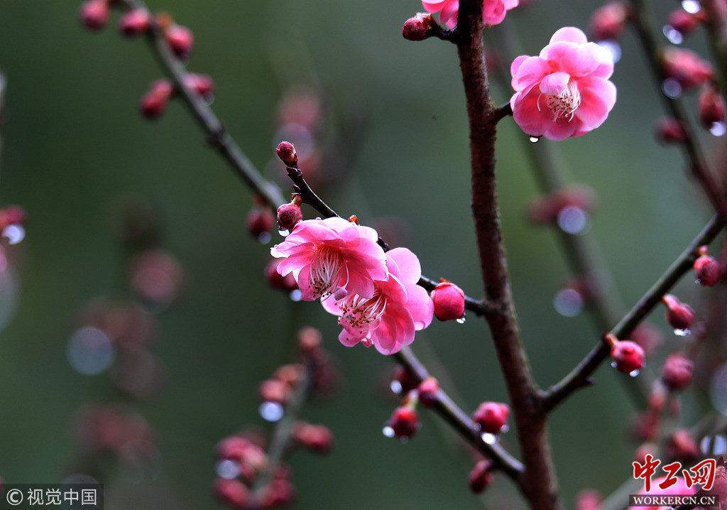 安徽黄山:古梅迎春绽放娇艳欲滴
