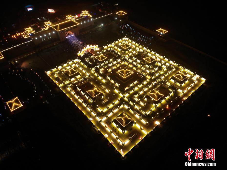 2月12日,农历正月初八,甘肃张掖市上万民众穿越“九曲黄河灯阵”闹新春。当日,张掖市古城村举行点灯仪式,365盏明灯被“点亮”。“九曲黄河灯阵”又称九曲黄河灯会、转九曲等,因灯阵曲折绵延如黄河之龙曲而得名,是传承千年的历史文化遗产。碱滩镇古城村是中国历史文化名村,为“九曲黄河灯阵”的始源地之一。中新社记者 杨艳敏 摄