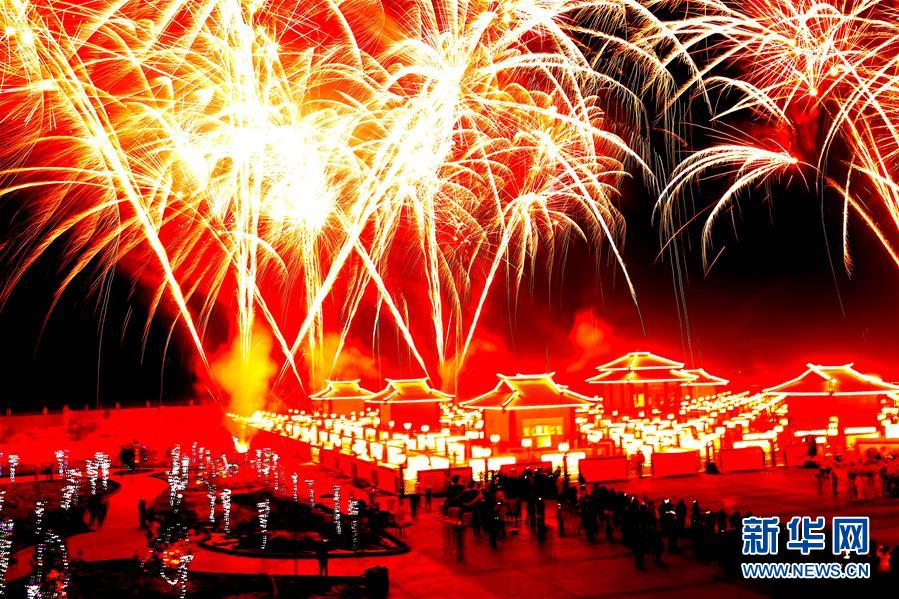 这是2月12日在甘肃张掖甘州区碱滩镇古城村拍摄的九曲黄河灯阵夜景。 新华社发(陈礼 摄)