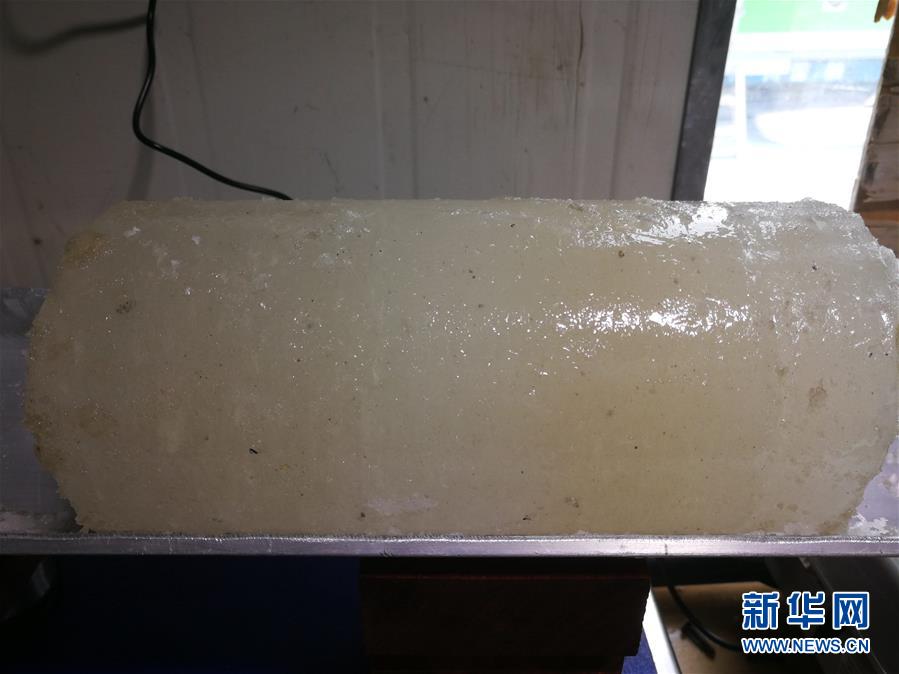 这是科考人员钻取的冰芯(2月10日摄)。新华社发(张楠 摄)