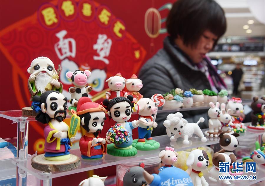 2月14日在活动现场拍摄的面塑艺人展示的作品。