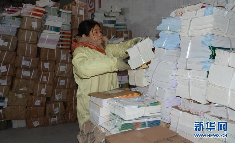 2月14日,安徽省马鞍山市含山县新华书店的员工在仓库里分拣整理教材。 新学期开学在即,各地新华书店抓紧做好中小学生教材的分类和发放工作,确保学生们及时领到新教材。 新华社发(苏自山 摄)