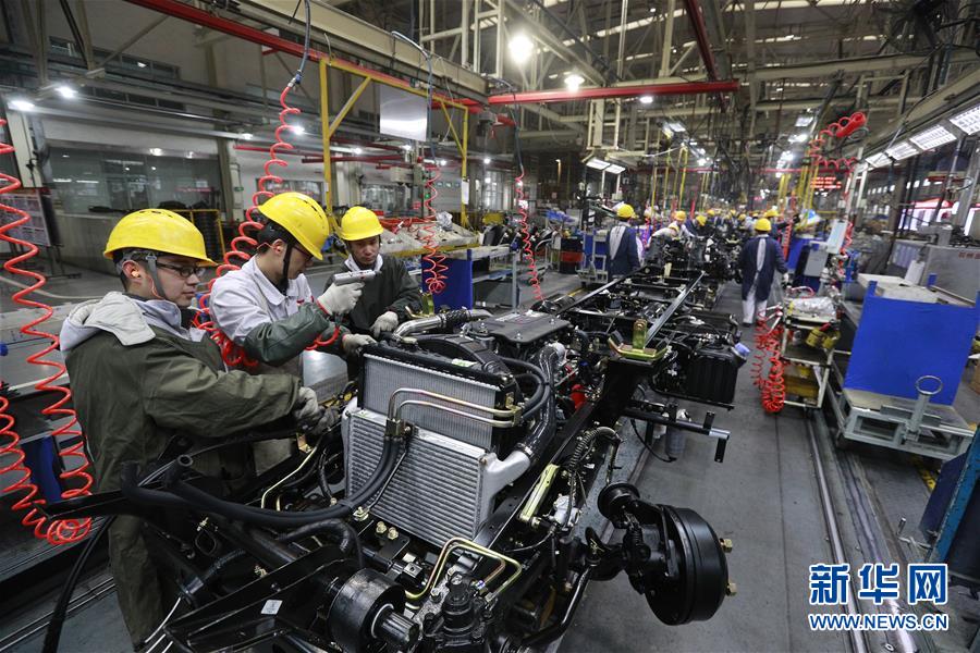 2月14日,工人在湖北襄阳一轻型商用车公司的生产线上忙碌。 新华社发(王虎 摄)