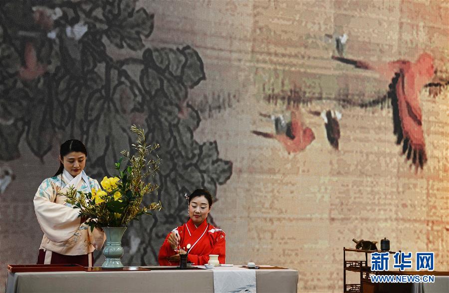 2月14日,第二届两岸茶文化论坛活动在高雄佛光山举行,云南交流团为观众献上“清苑雅事,茶汤盛礼”。 新华社记者 李响 摄