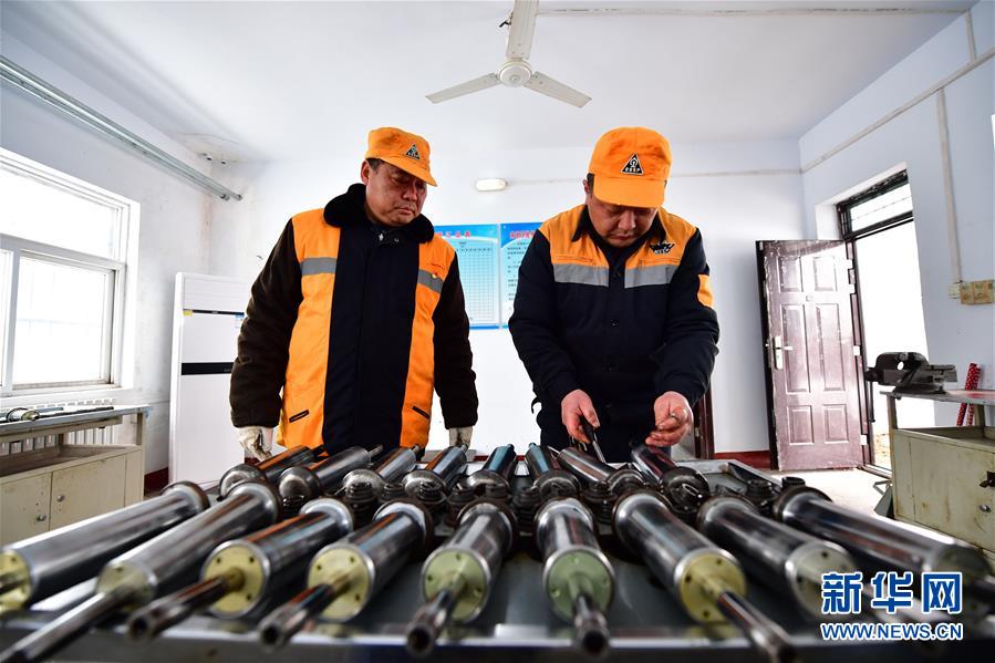 2月14日,在河南省焦作市博爱县月山镇月山车站设备检修车间,铁路工人对减速顶进行维修。新华社记者 冯大鹏 摄