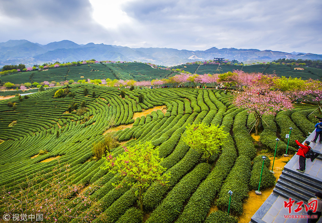 航拍福建龙岩台湾农创园 樱花烂漫迎新春