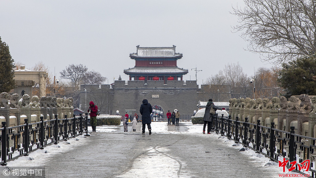 2019年2月14日,北京降雪,卢沟桥景色宜人,银装素裹分外妖娆。