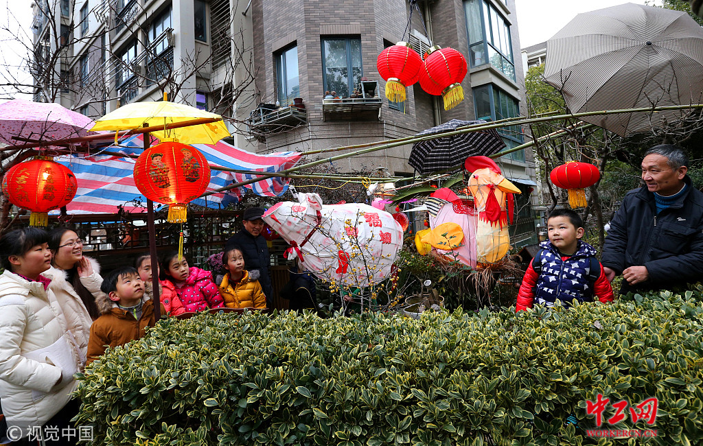 2019年2月14日,上海,园内各种各样的花灯供小区居民和孩子们观赏游玩。