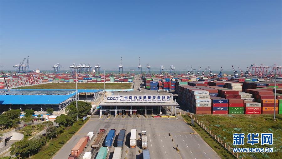 这是广州南沙海港集装箱码头(2018年10月30日无人机拍摄)。新华社记者 吴鲁 摄