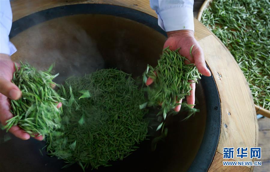2月15日,制茶工在柳州市柳城县一茶厂内炒茶。 新华社发(邓克轶 摄)