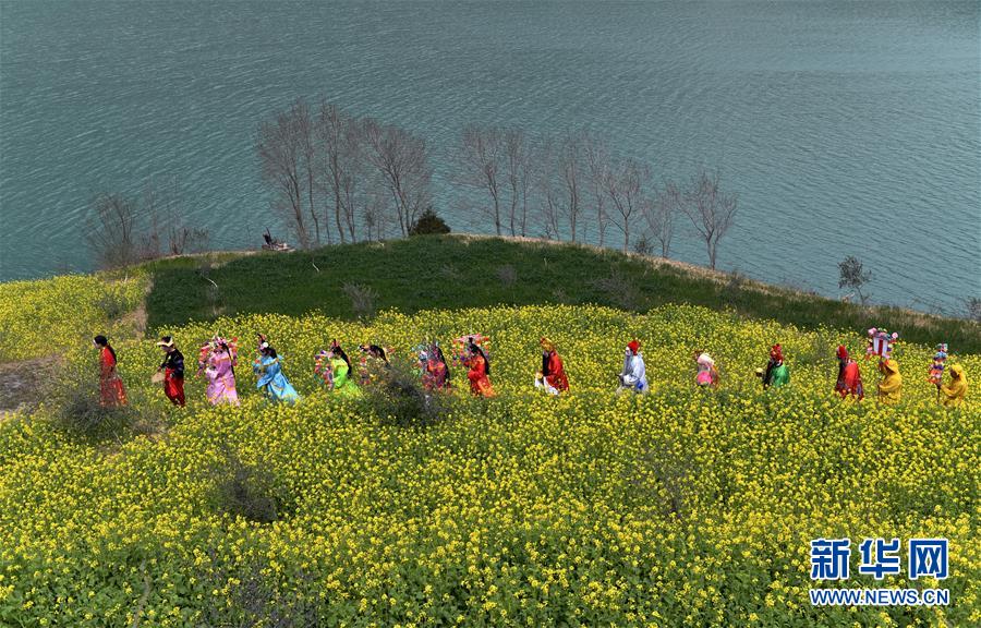 2月16日,玉垒花灯戏艺人在甘肃省陇南市文县玉垒乡玉垒坪村的田间行走。 玉垒花灯戏是甘肃省的非遗传统戏曲剧种之一。元宵节将至,文县玉垒乡各村的花灯戏艺人来到玉垒坪村进行交流展演,并在村内进行巡游,喜迎元宵佳节。 新华社发(冉创昌 摄)