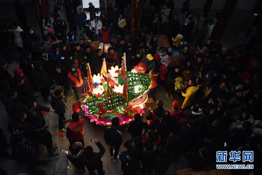 这是寓意丰收除害、六畜兴旺的青蛙龙灯头(2月17日摄)。 2月17日,江西省南昌市新建区石岗镇石岗村热闹非凡,村民舞起由1200多个花灯和400余条板凳灯连接而成的梅烛灯绕村游走,祈求风调雨顺、五谷丰登。 石岗梅烛灯也叫“板凳龙”,由青蛙龙灯头、龙身、龙尾组成。这个习俗在当地已流传了数百年,每年正月十三晚上举行,入选江西省省级非物质文化遗产名录。 新华社记者宋振平摄