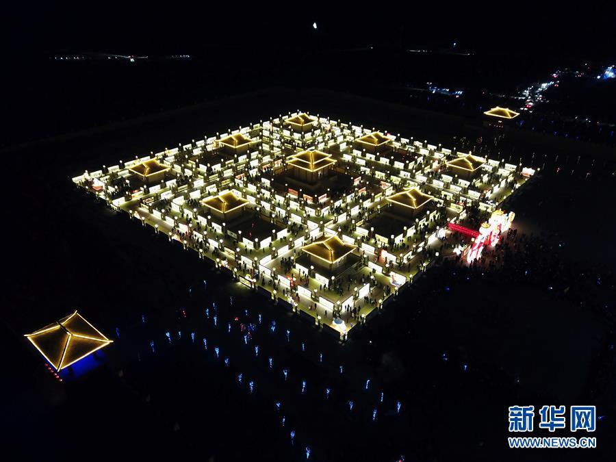 2月17日晚拍摄的甘肃省张掖市九曲黄河灯阵(无人机拍摄)。 元宵节将至,各地张灯结彩,一派喜庆热闹的节日景象。 新华社发(成学磊 摄)